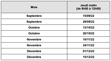 Ces permanences sont assurées par des mandataires judiciaires expérimentés et offrent un service gratuit, confidentiel et sans rendez-vous selon le calendrier suivant :