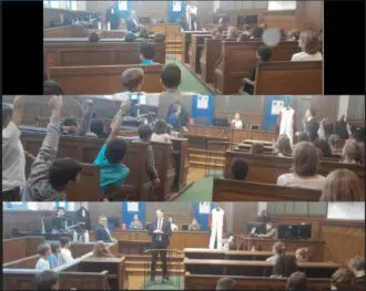 Le jeune public a fait preuve d’une grande curiosité à l’égard de l’institution judiciaire et s’est prêté avec enthousiasme aux mises en situation proposées par monsieur le Président.
